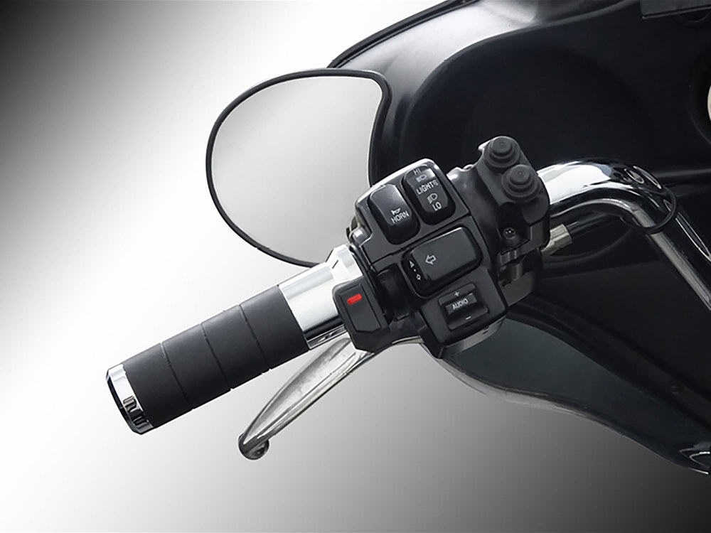 Finished are the days of searching around for a dial or button to power on heated grips. Our Titan-X heated grips for Harley-Davidson® feature an integrated 5 temperature level thumb switch which allows riders to easily power on/off or adjust the level of temperature without having to remove their hands from the handlebars.